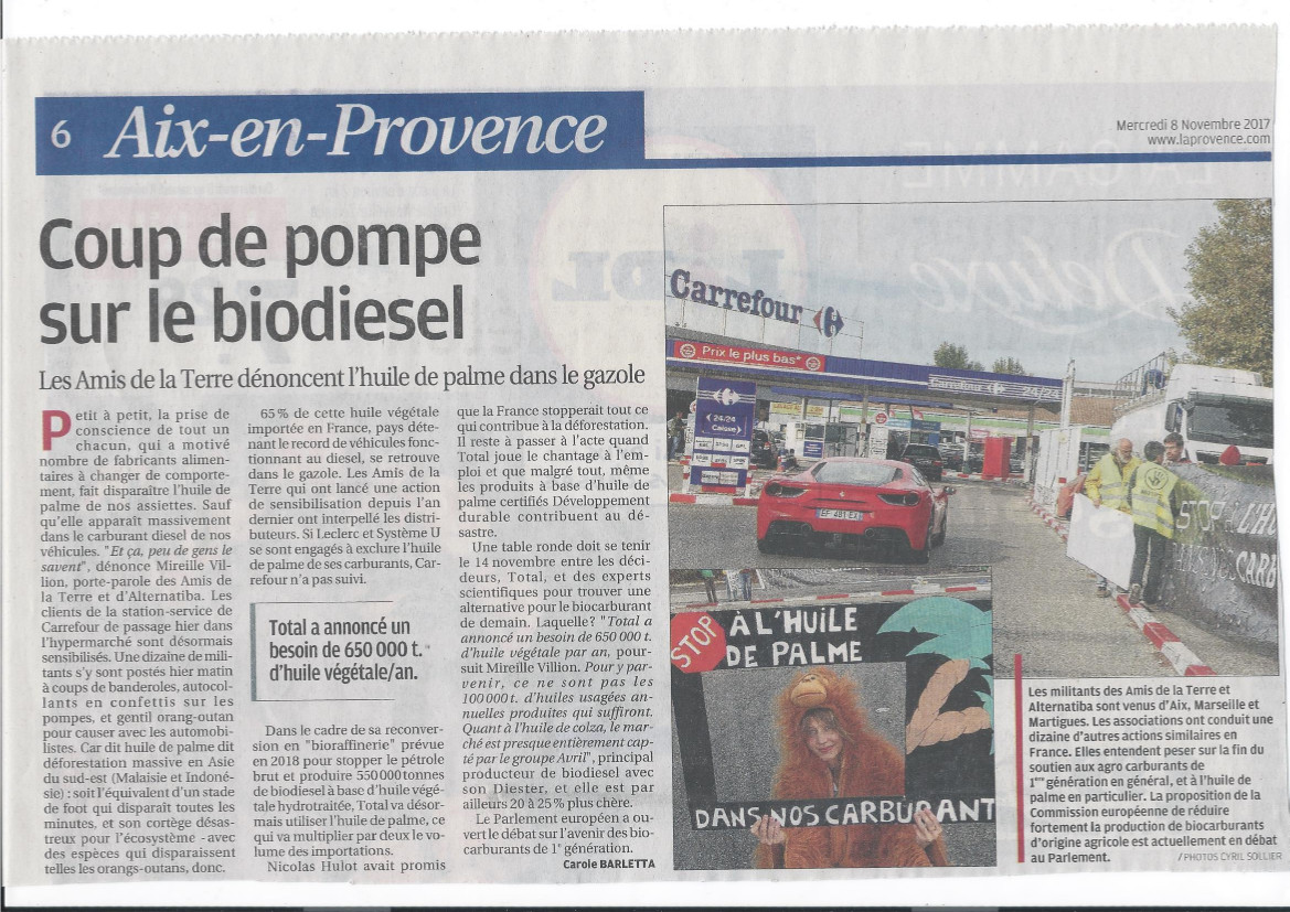 STOP Huile de palme à Carrefour Les Milles (Aix en Provence)