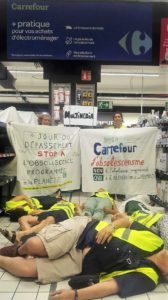 Jour du dépassement : action à Carrefour Marseille pour dénoncer la surconsommation des ressources naturelles.