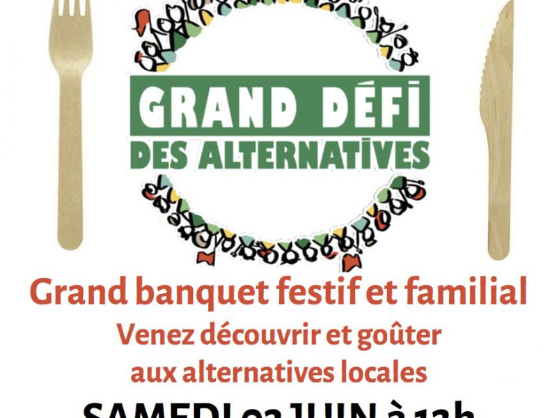 Le collectif climat pays d’Aix, relais Alternatiba dans le pays d’Aix vous invite le samedi 3 juin entre midi et 15h00 à son défi des alternatives : défi alimentaire: venons soutenir l’épicerie sociale et solidaire de l’épicerie du Coing à Aix-en-Provence (en bas de la gare routière). « Changeons nos assiettes,